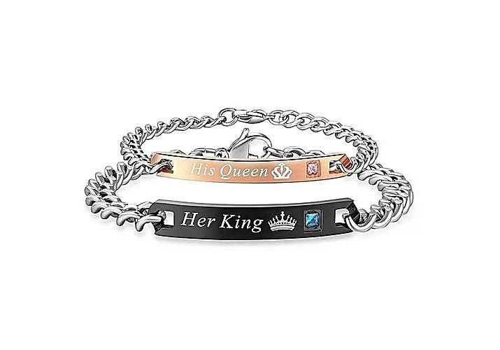 2 Bracelets couple amoureux king & Queen en acier inoxydable