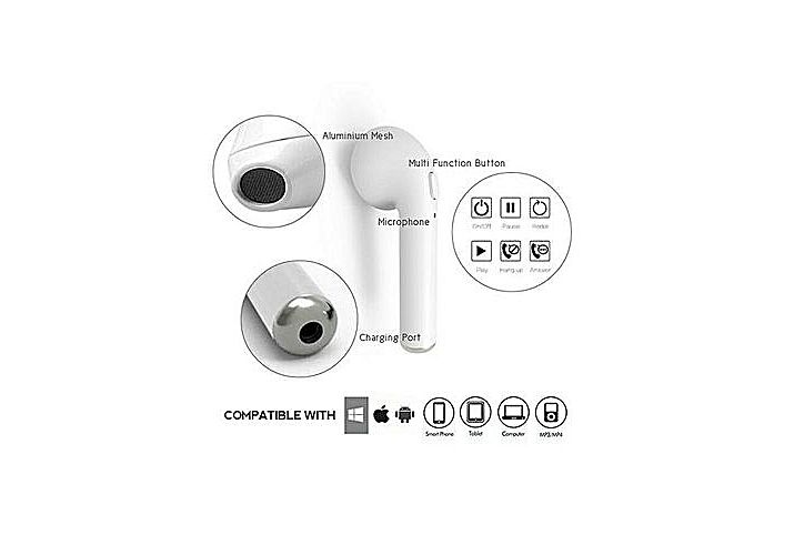 2 Écouteurs Sans Fil Bluetooth i7 TWS Compatible Android Apple et Windows Phone - Blanc