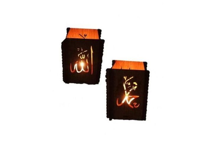 2 Photophores Lumineux en Bois Démontables avec 2 Bougies