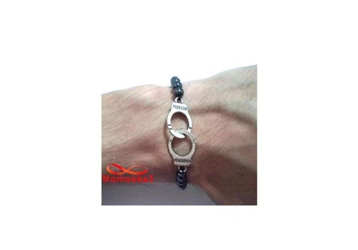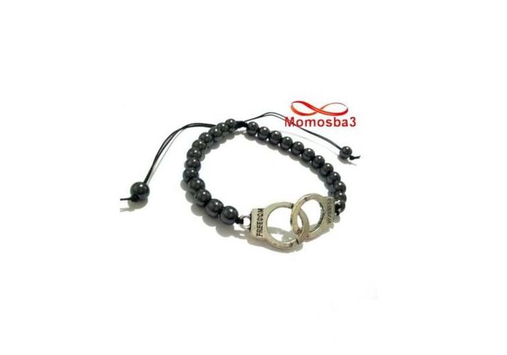 Agate Bracelet Hématite Avec Pendentif Menotte Freedom Unisex - Fil Réglable