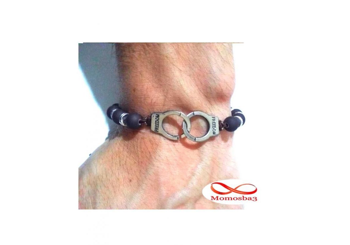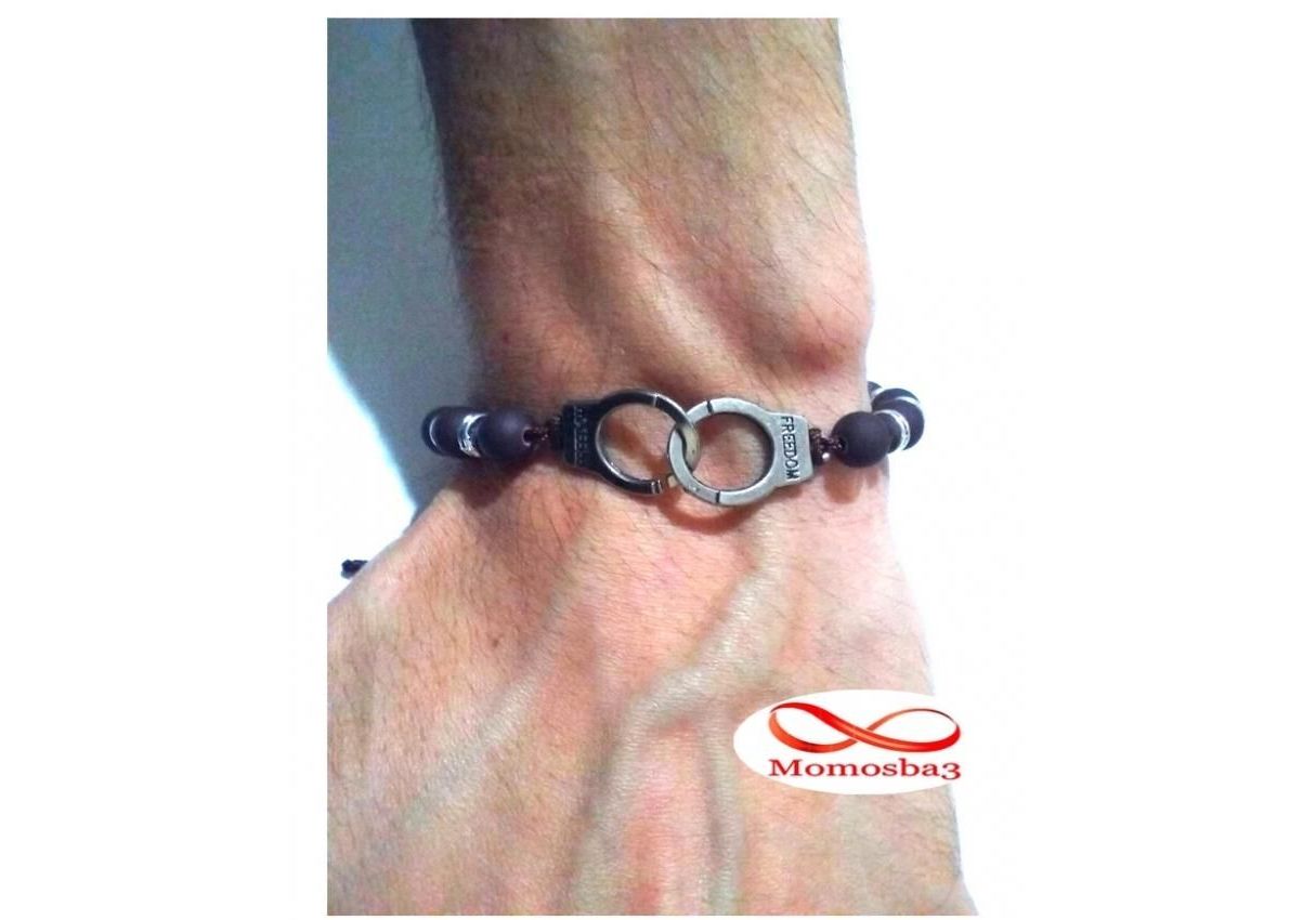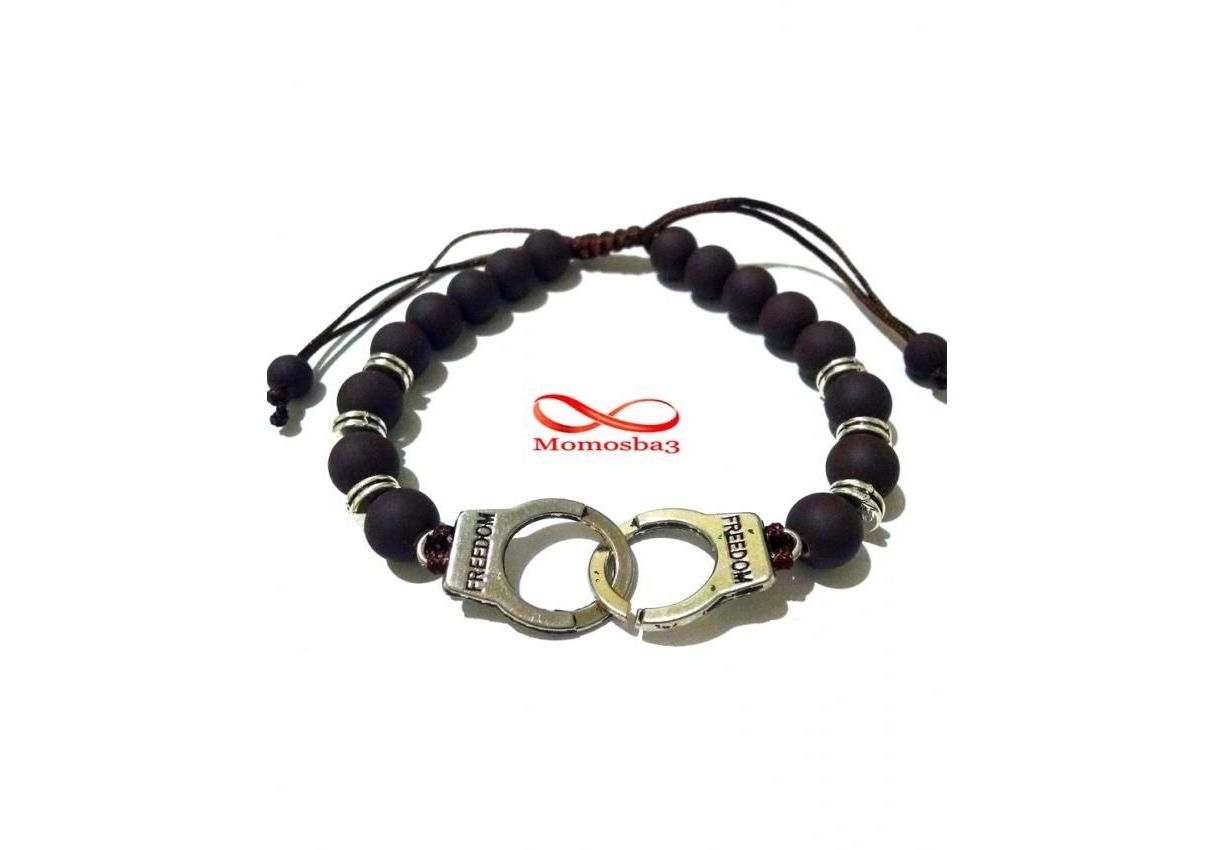 Agate Perles MARRON Mat Avec Pendentif Menotte Argent Charm Réglable