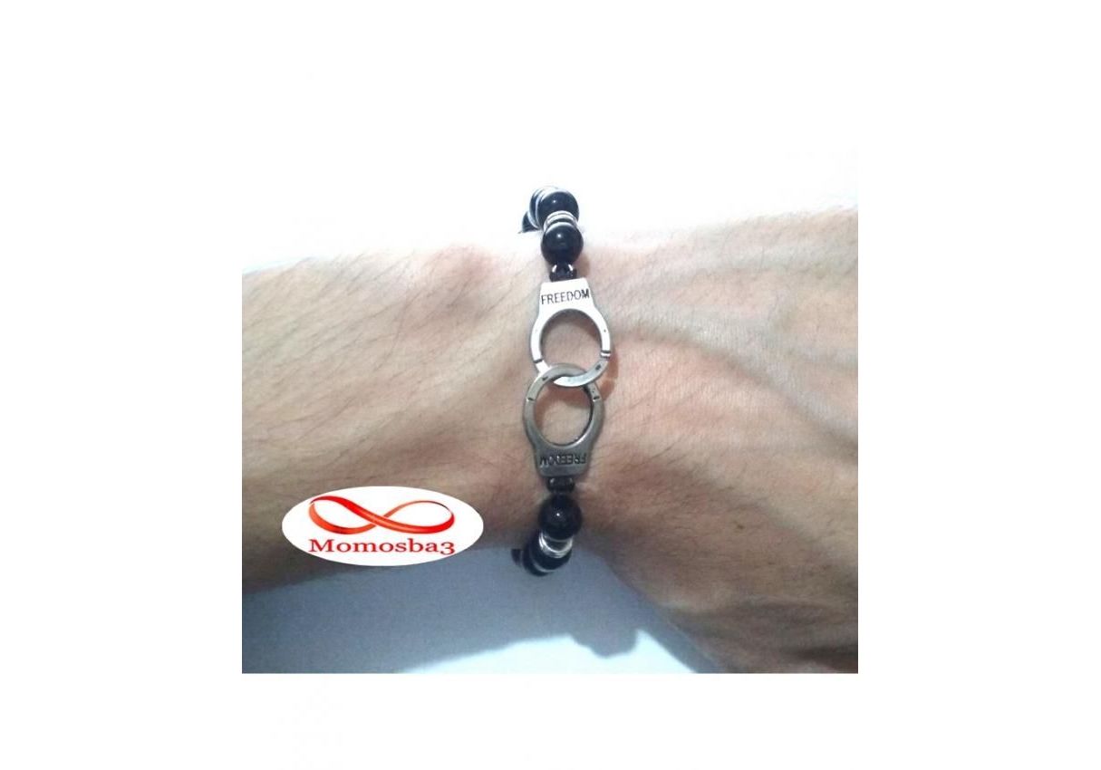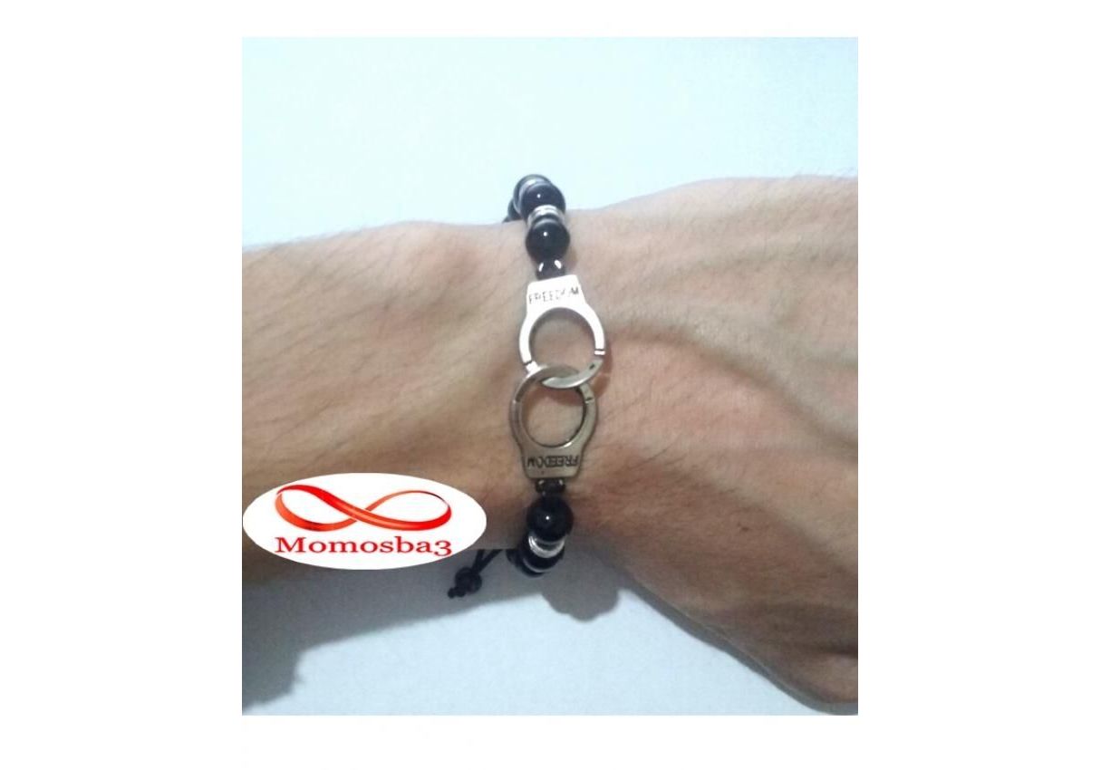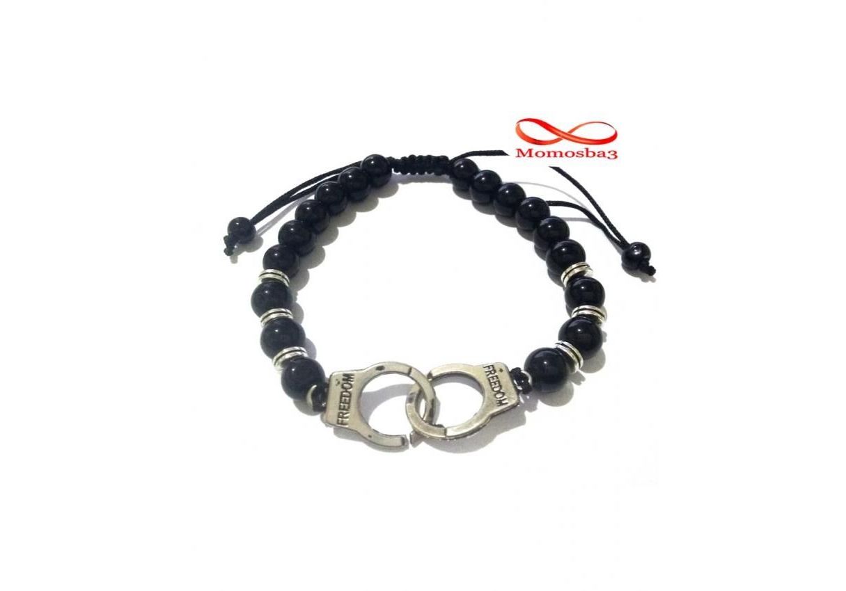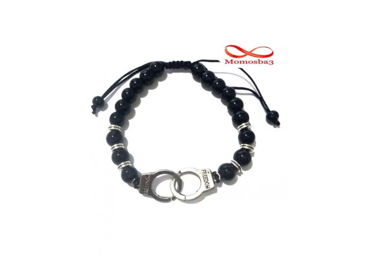 Agate Perles Noir Avec Pendentif Menotte Argent Charm Réglable