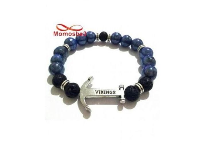 Agate Pierre Naturelle Avec Pendentif Ancre Vikings Argenté - Unisex