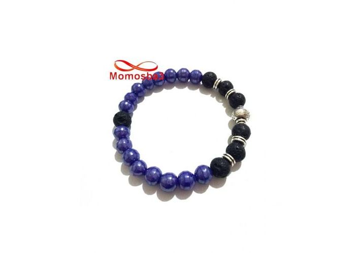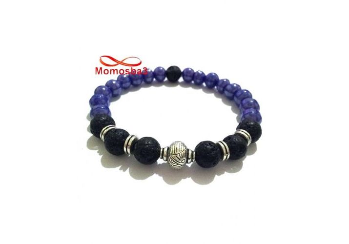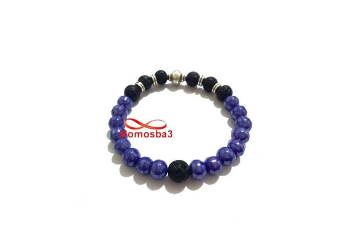 Agate Pierre Naturelle BLEU + Noir - Unisex