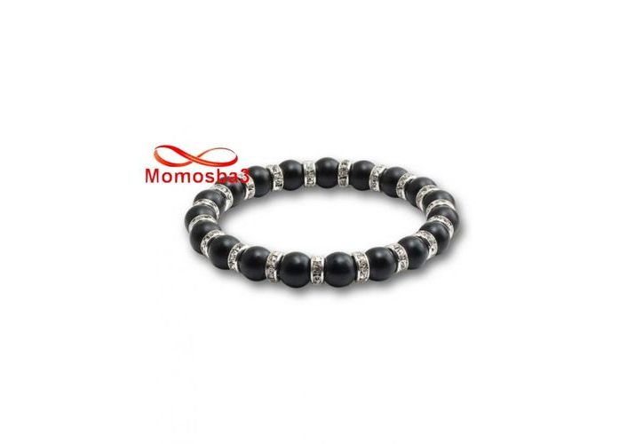 Agate Pierre Naturelle Noir + Cristal BLANC - Unisex