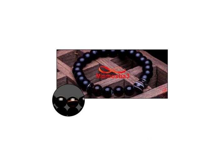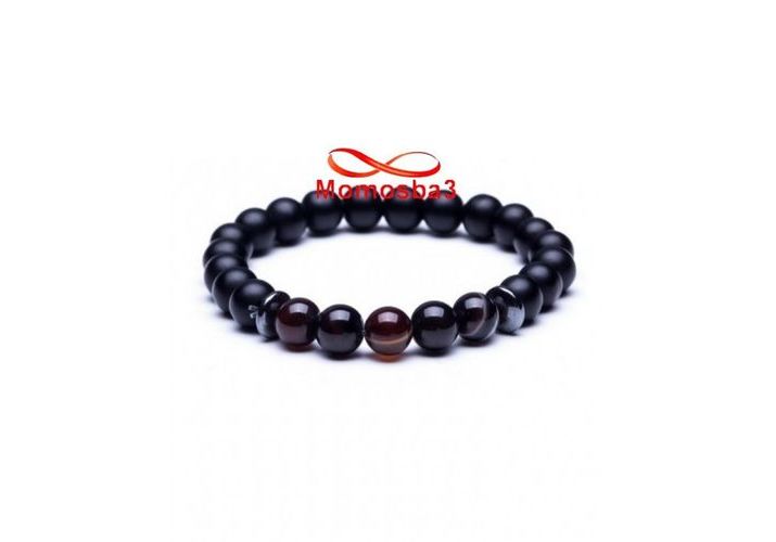Agate Pierre Naturelle Noir Mat + MARRON (élastique)