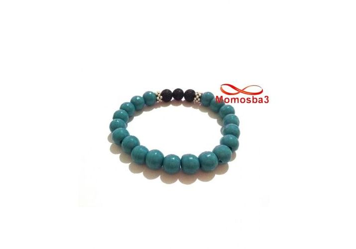 Agate Pierre Naturelle Turquoise + Noir (Unisex)