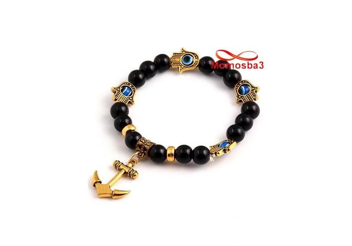 Agate Pierres Naturelle Avec Pendentif Khmissa Et Ance Marine - élastique