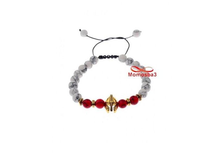 Agate Pierres Naturelle BLANC ROUGE+ Pendentif GLADIATOR DORE (Fil Réglable)