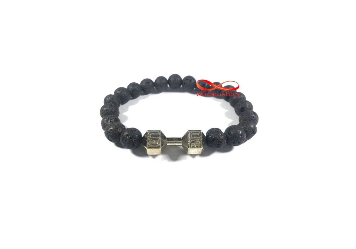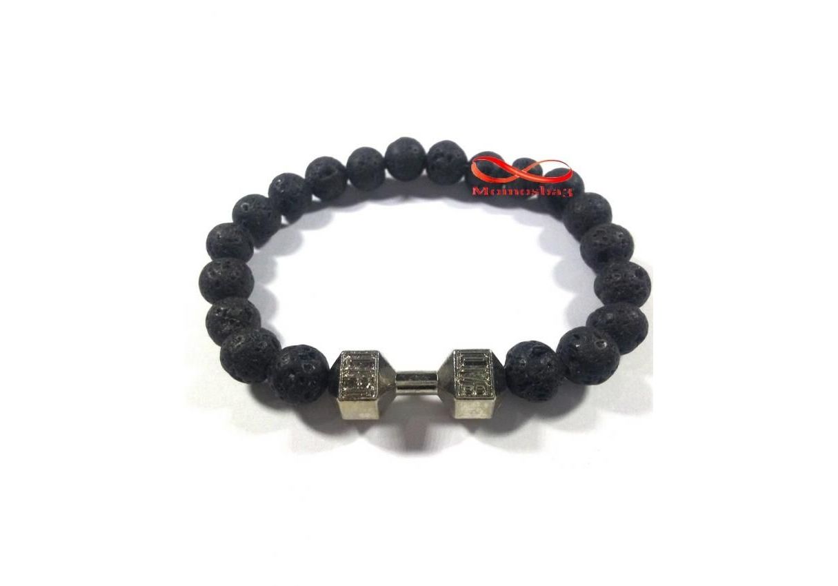 Agate Pierres Naturelle Lave Noir Avec Pendentif Fitness Argenté - élastique