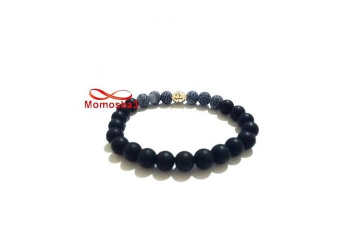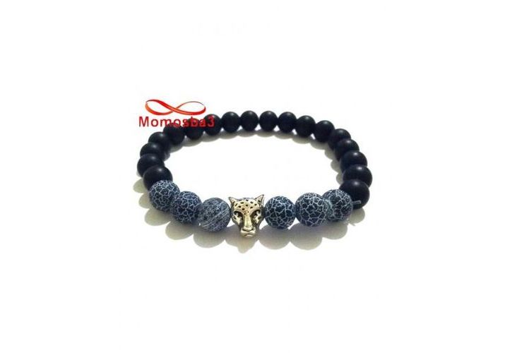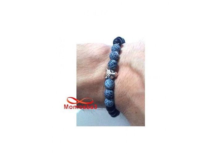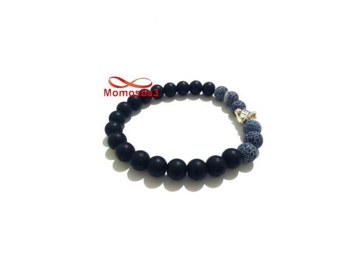 Agate Pierres Naturelle Noir Mat Et BLEU + Pendentif TIGER (élastique)