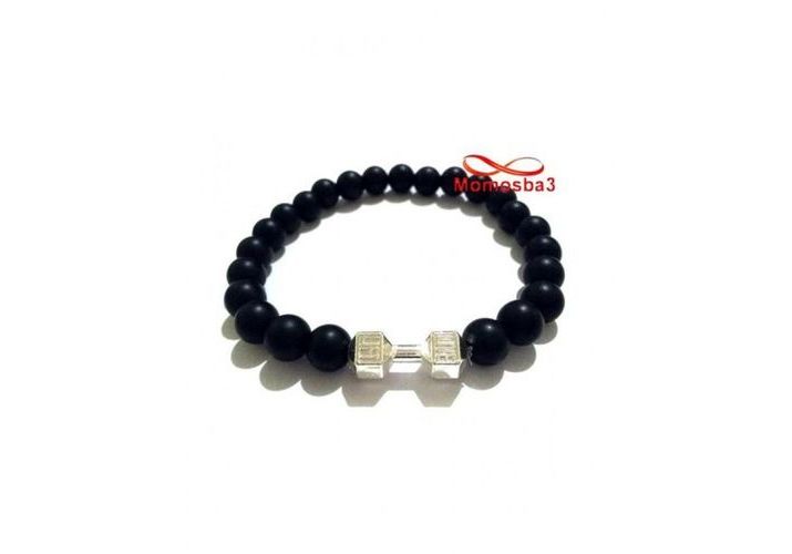 Agate Pierres Noir Mat Avec Pendentif Fitness Argenté - élastique