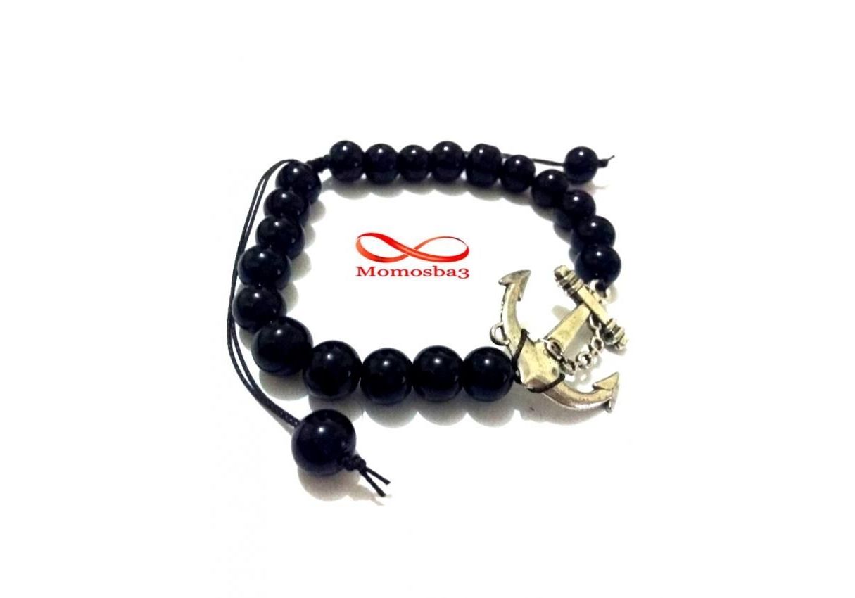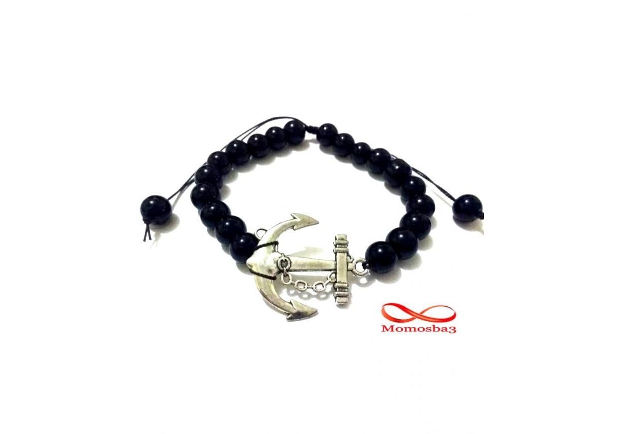 Agate Verre Avec Pendentif Ancre Marine (Fil Réglable)