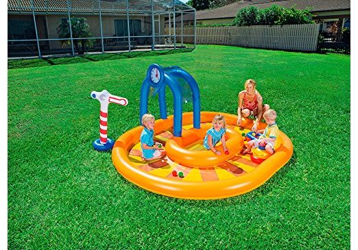 Aire de Jeu, Petit Train L 240cm l 180cm h 90cm + Train gonflable + signal et tunnel gonflable + 10 balles de jeu+ Jet d'eau avec raccordement tuyau d'arrosage