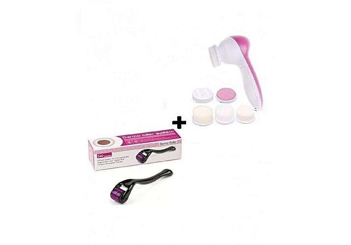 Pack spécial composé d'une brosse 5 en 1 capable de purifier votre épiderme en enlevant toutes les impuretés et d'une Derma Roller pour