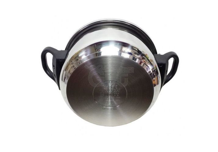 Autocuiseur tout inox à fermeture par bride vissée.