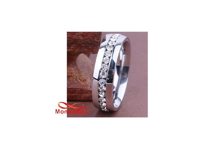 Bague En Acier Inoxydable Argenté Avec Pierres BLANC - Unisex
