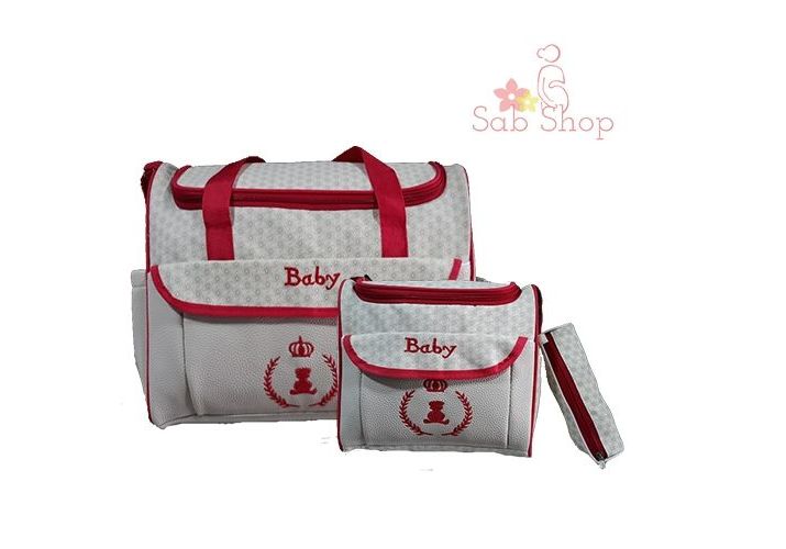 Bébé Pack bébé : Sac à langer en Cuir pour Bébé - 3X1 pièces - Blanc & Rouge