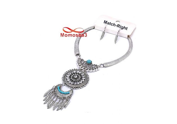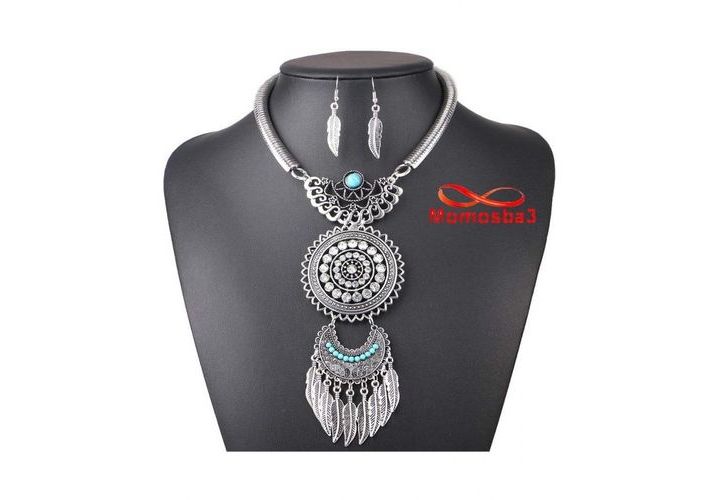 Bijoux Ensemble Collier + Boucle D'oreille Plume Pour Femme