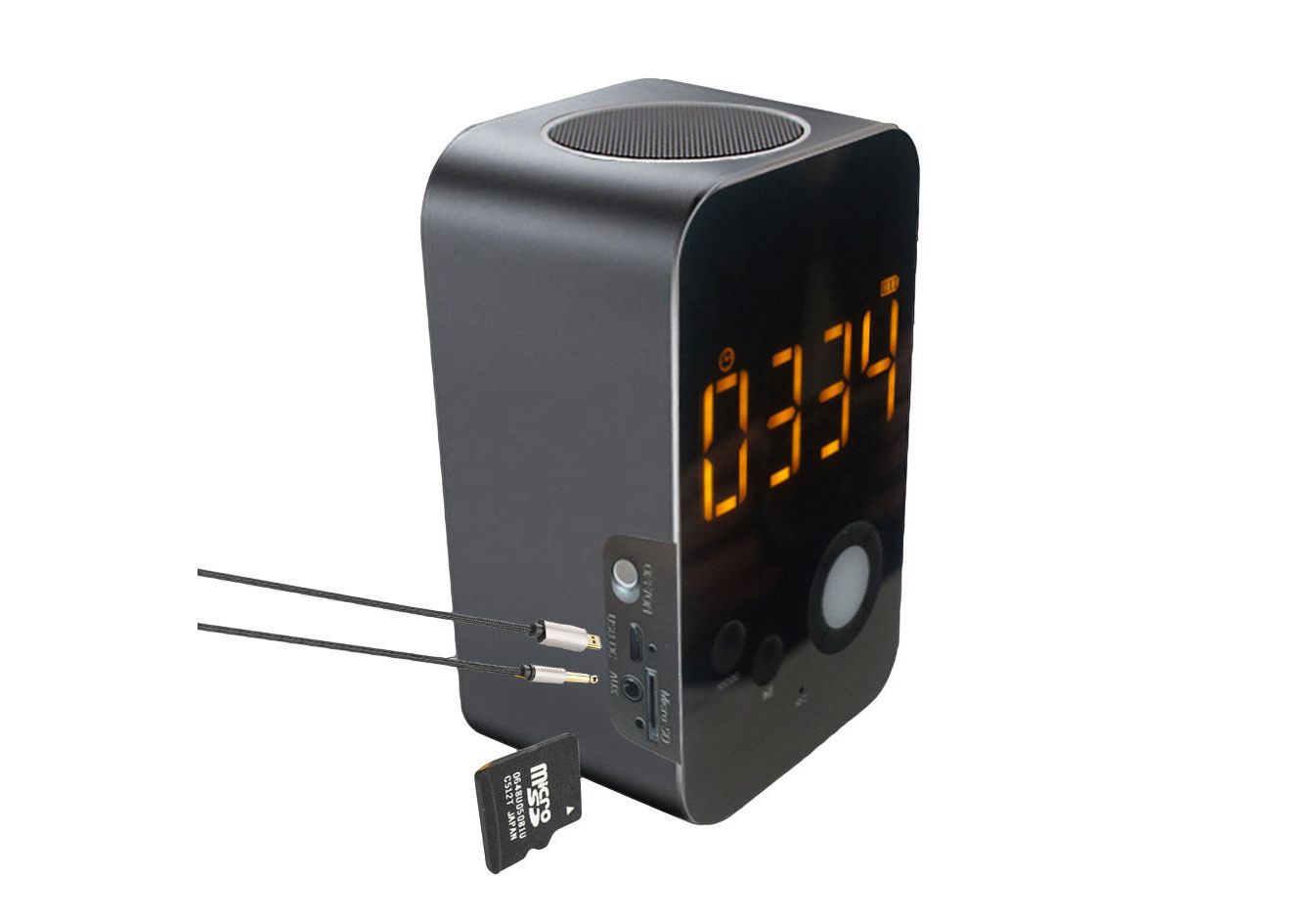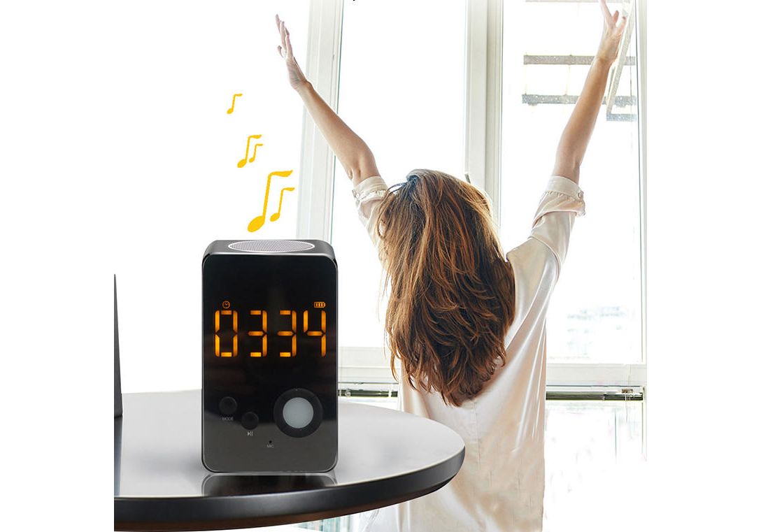 Bluetooth Audio Miroir Réveil Sans Fil Bluetooth Haut-Parleur avec Fonction Radio FM - Noir