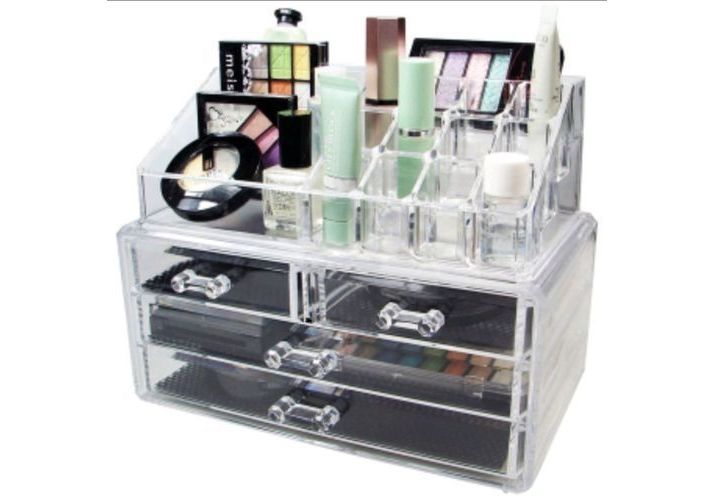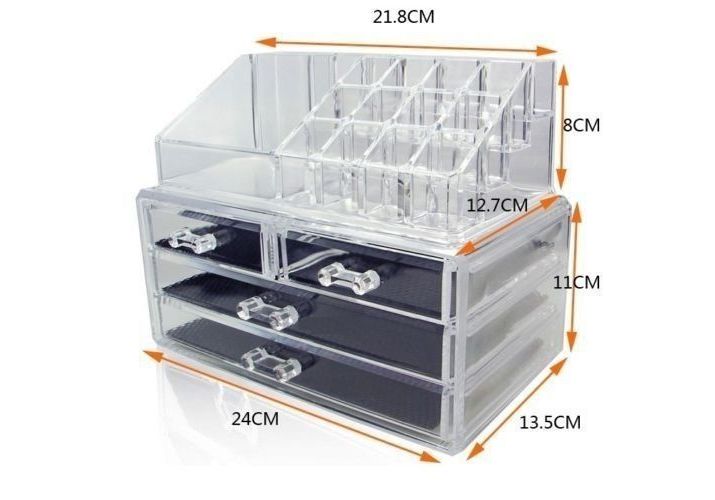 La boite de rangement de cosmétiques en acrylique transparent :