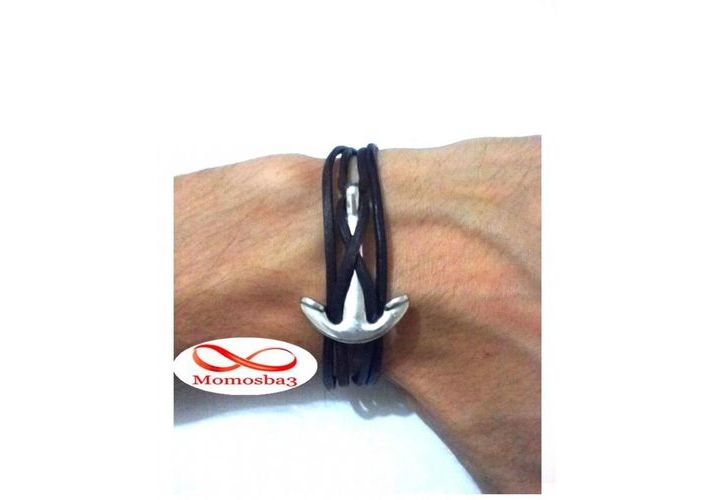 Bracelet Ancre Cuir MARRON + Fermoir Acier Inoxydable (Réglable)