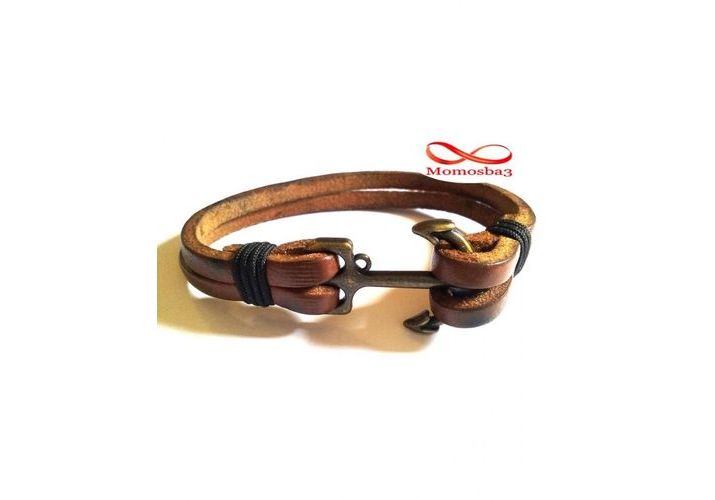 Bracelet Ancre Marine Cuir MARRON (Réglable)