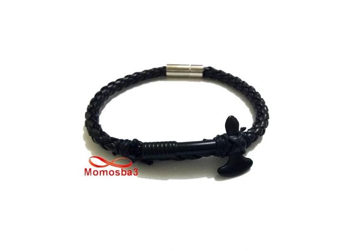 Bracelet Cuir Avec Pendentif Cleaver Noir Et Fermoir En Acier Inoxydable