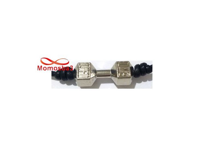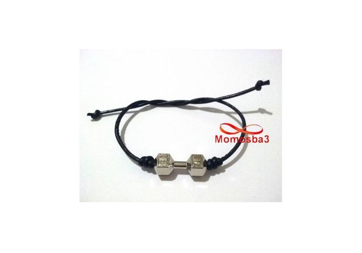 Bracelet Cuir Noir Avec Pendentif Fitness Argenté Unisex