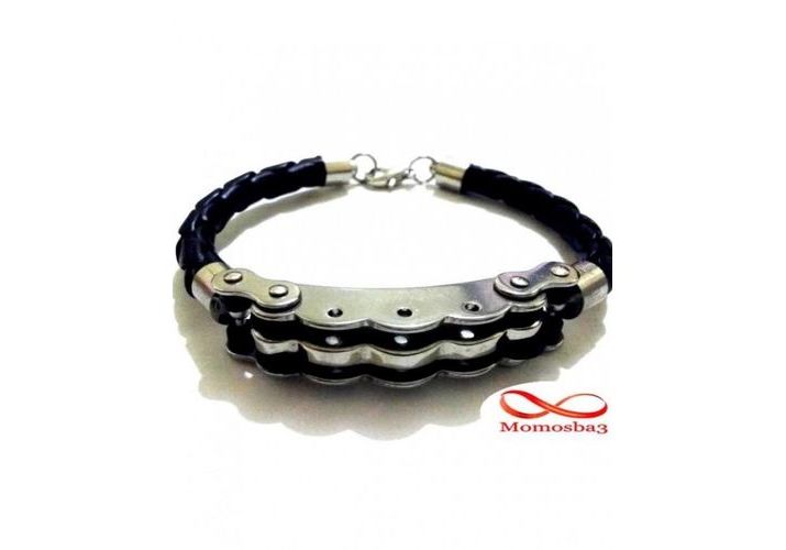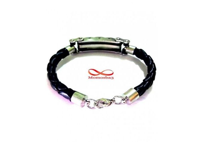 Bracelet Cuir Noir Et Acier Inoxydable