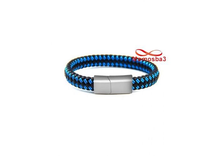 Bracelet Cuir Noir Et BLEU Avec Fermoir Magnétique - Unisex