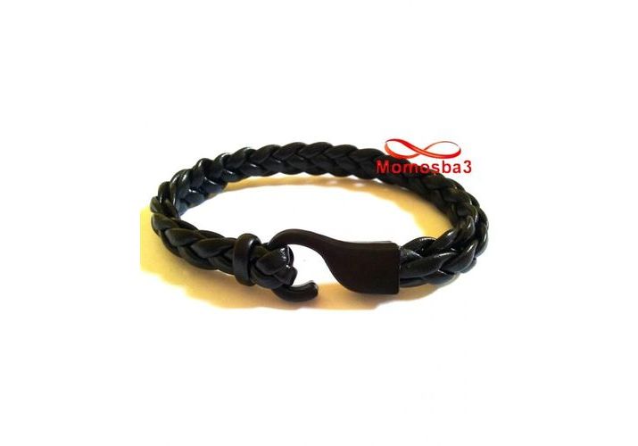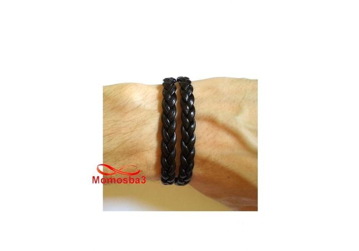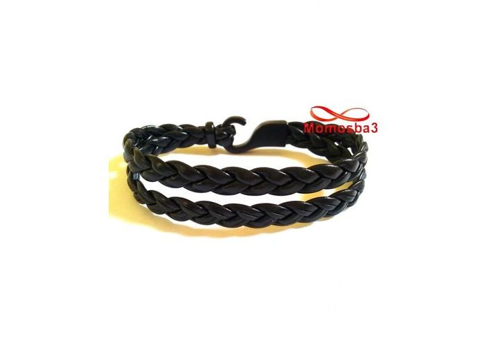 Bracelet En Cuir Noir Avec Fermoir Noir - Unisex