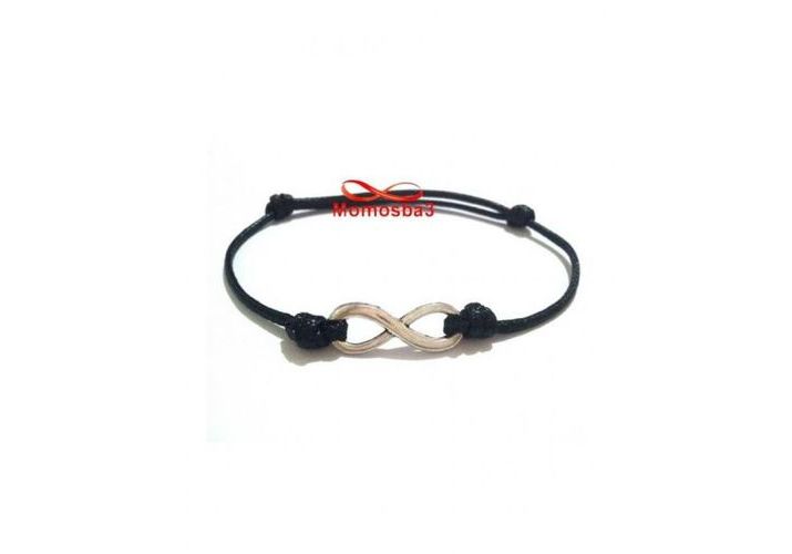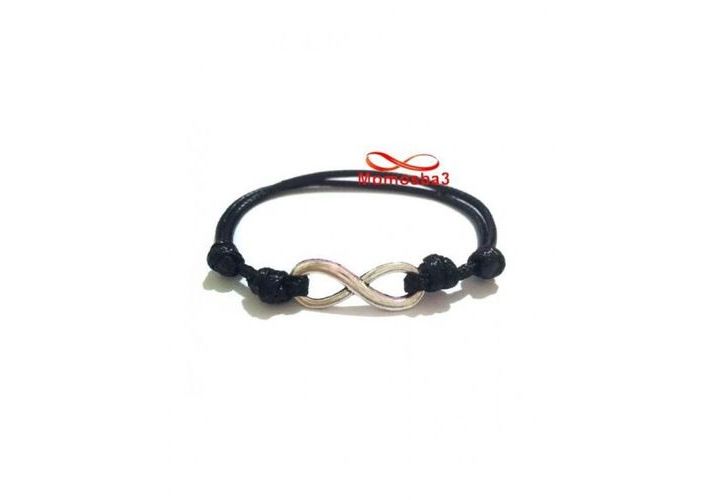 Bracelet Fil Noir Avec Pendentif Infinity Argent Charm Réglable - Unisex