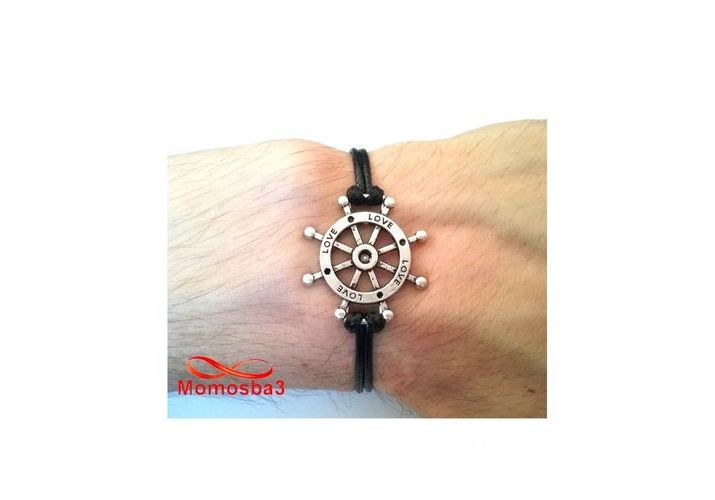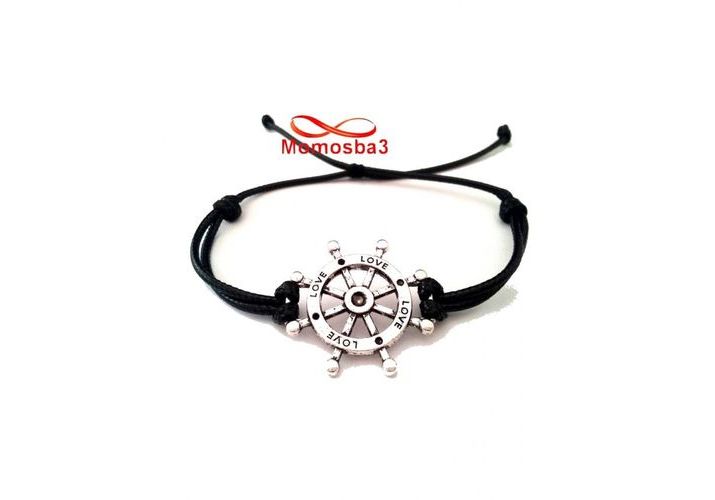 Bracelet Fil Noir Avec Pendentif Marine LOVE Argent Charm Réglable - Unisex