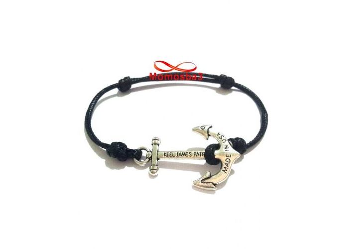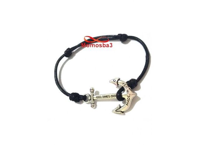 Bracelet Fil Noir Réglable Avec Pendentif Ancre Marine Kiel James Patrick - Unisex