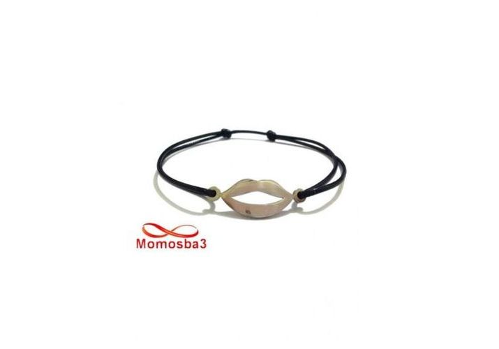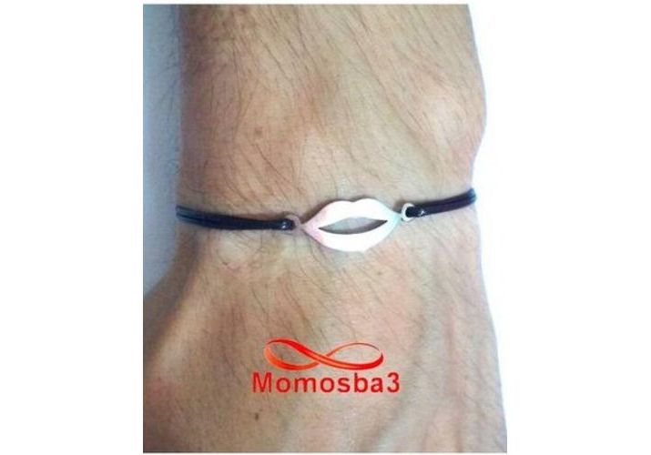 Bracelet Fil Noir Réglable Avec Pendentif Bouche En Acier Inoxydable - Unisex