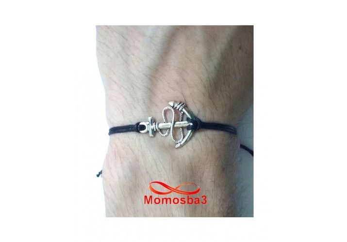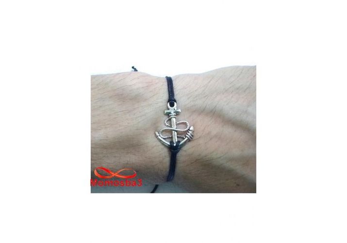 Bracelet Fil Noir Réglable Avec Pendentif Grand Ancre Marine Argenté Charm - Unisex