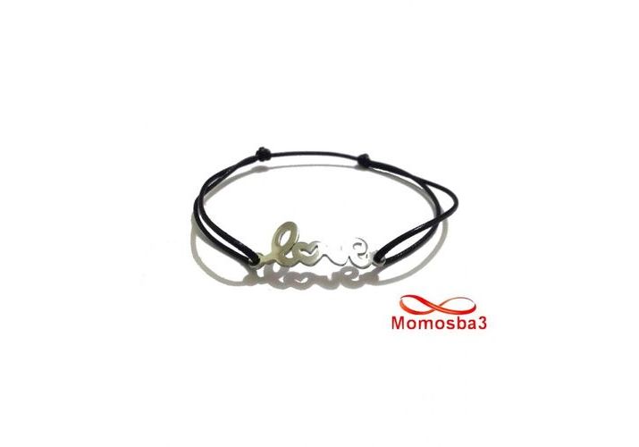 Bracelet Fil Noir Réglable Avec Pendentif LOVE En Acier Inoxydable - Unisex