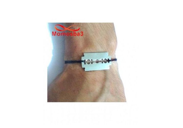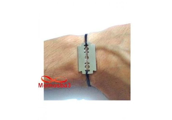 Bracelet Fil Noir Réglable Avec Pendentif Rasoir En Acier Inoxydable - Unisex