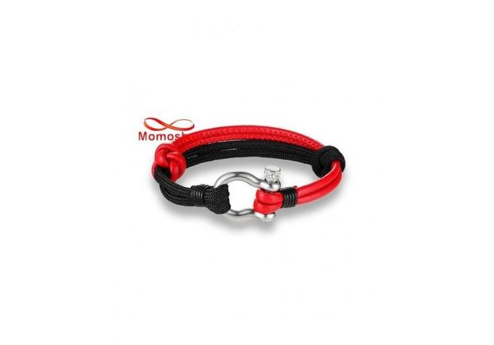 Bracelet Marine Cuir Et Fil Parachute Avec Fermoir En Acier Inoxydable Argenté