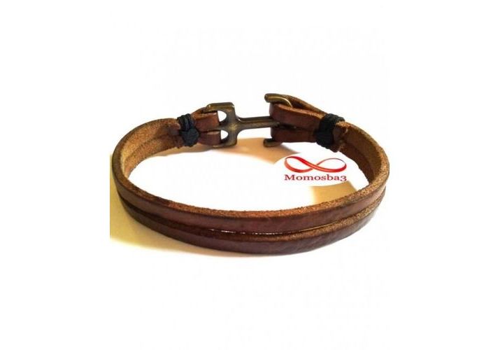 Bracelet Marine En Cuir MARRON Ancre BRONZE (Réglable)