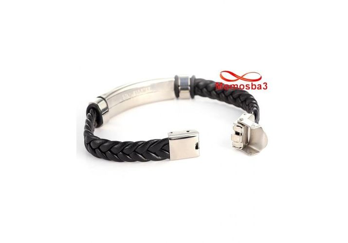 Bracelet Pour Homme En Cuir Noir Et Acier Inoxydable - Ajustable