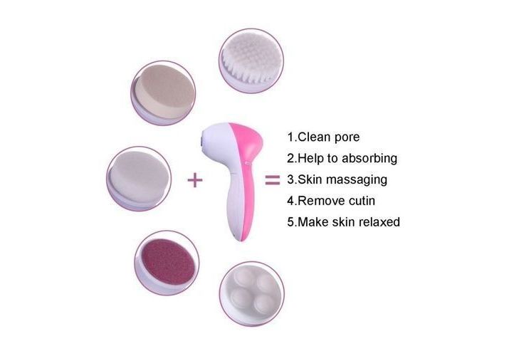 Cette brosse nettoyante électrique 5 en 1 a été conçue pour un soin complet du visage. Ses 5 têtes ont pour but de masser, nettoyer en profondeur, adoucir, raffermir et exfolier la peau pour un visage doux et propre.