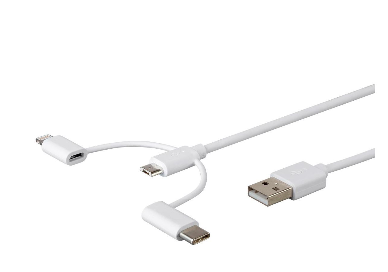Cable usb avec connecteur micro usb et adaptateur lightnin mfi White