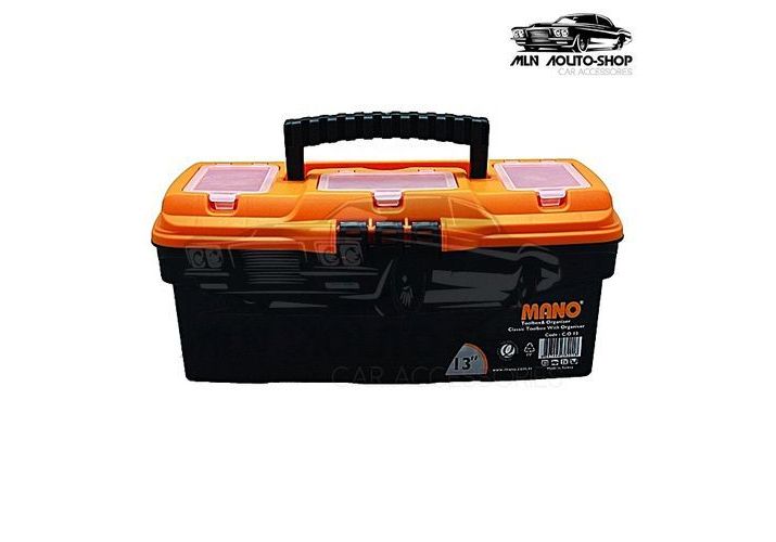 Notre caisse est une Boîte à outils vide de qualité de la marque Mano avec différents compartiments pour y ranger vos différents outils qui a une capacité de 13 pouces.