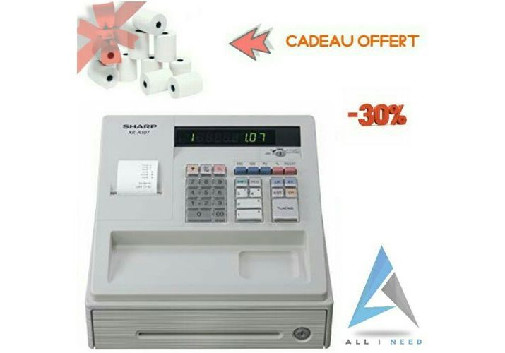 Caisse Enregistreuse avec écran LED XE-A107-Wh - Tiroir sécurisé 4 compartiments à billets et 5 compartiments à pièces + 10 Rlx de caisse