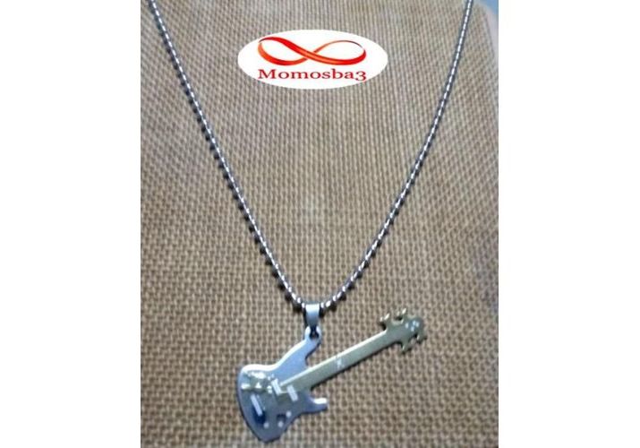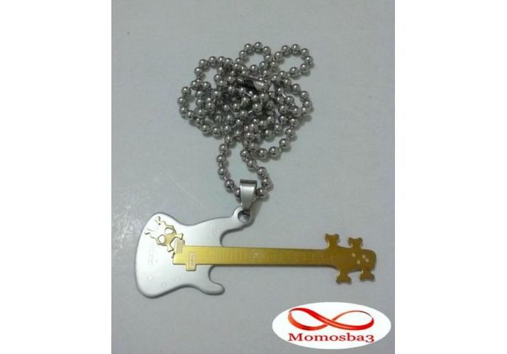 Chaine Avec Pendentif Guitar Argenté + DORE Acier Inoxydable