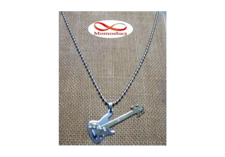Chaine Avec Pendentif Guitar Argenté + DORE Acier Inoxydable