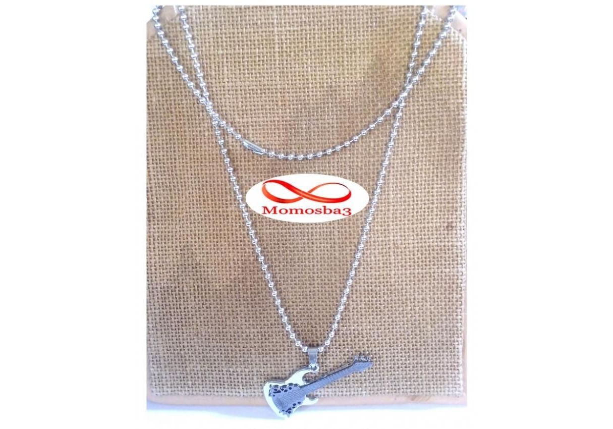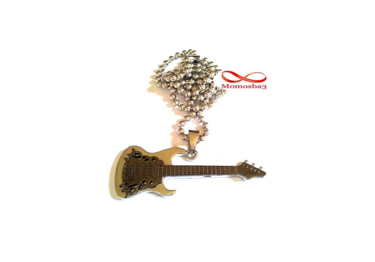 Chaîne Avec Pendentif Guitar En Acier Inoxydable