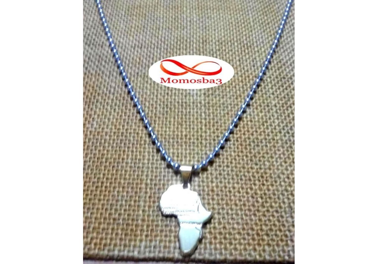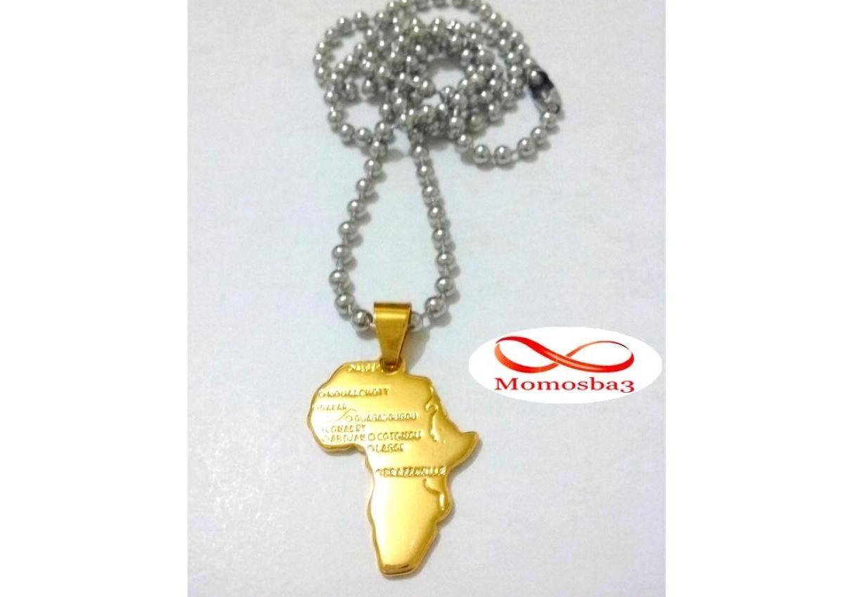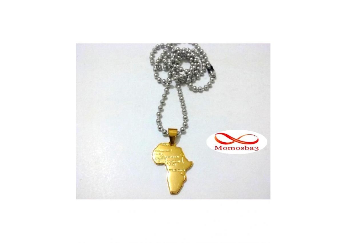 Chaine Maille Boule + Pendentif Afrique Plaqué Or DORE - Acier Inoxydable